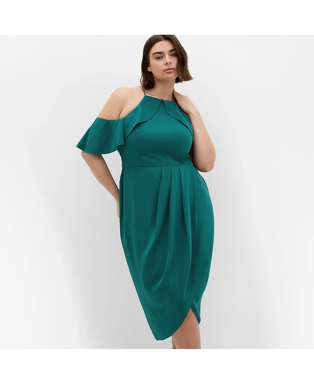 City Chic Plus Love Siren Ruffle Shoulder Dress