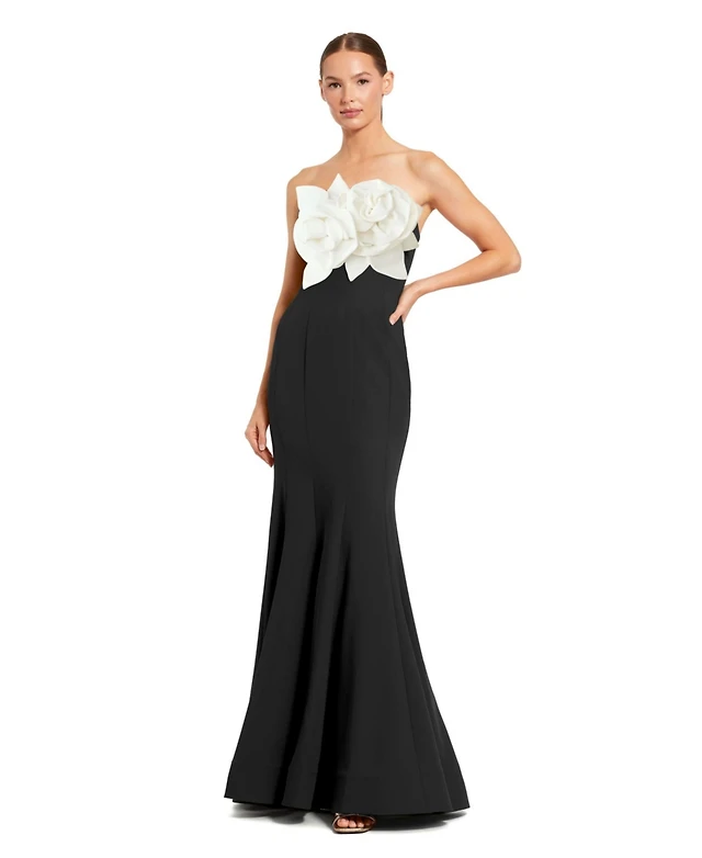 Women's Crepe Strapless Mermaid Gown With 3D Flowers