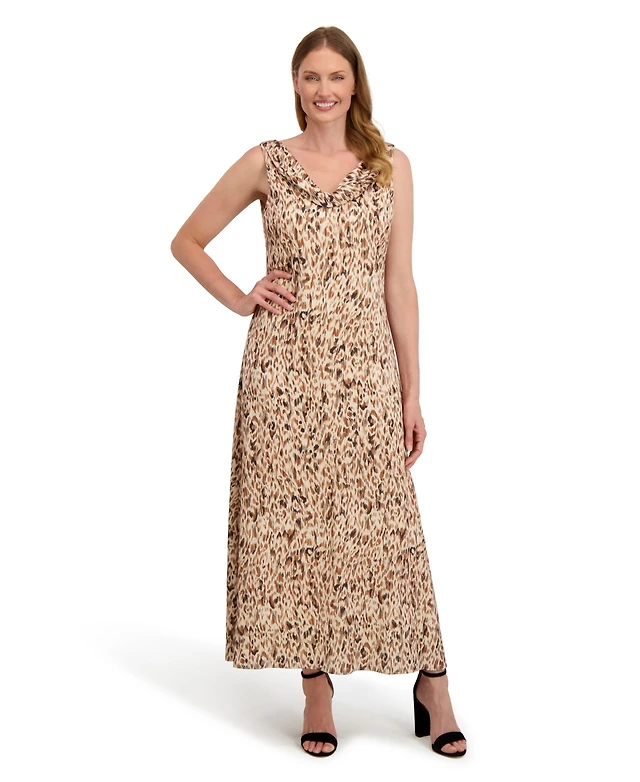 Betsy & Adam Women's V-Neck Pleated Animal Print Gown