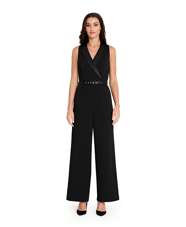 Tahari Asl Women's Halter Sleeveless Tuxedo Jumpsuit