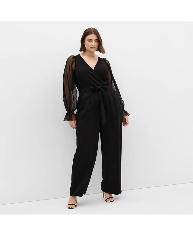 City Chic Women's Plus Size Alannah Mesh Sleeve Jumpsuit