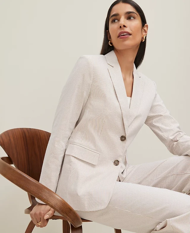 Ann Taylor The Double Breasted Blazer Pinstripe Sandstorm Women's