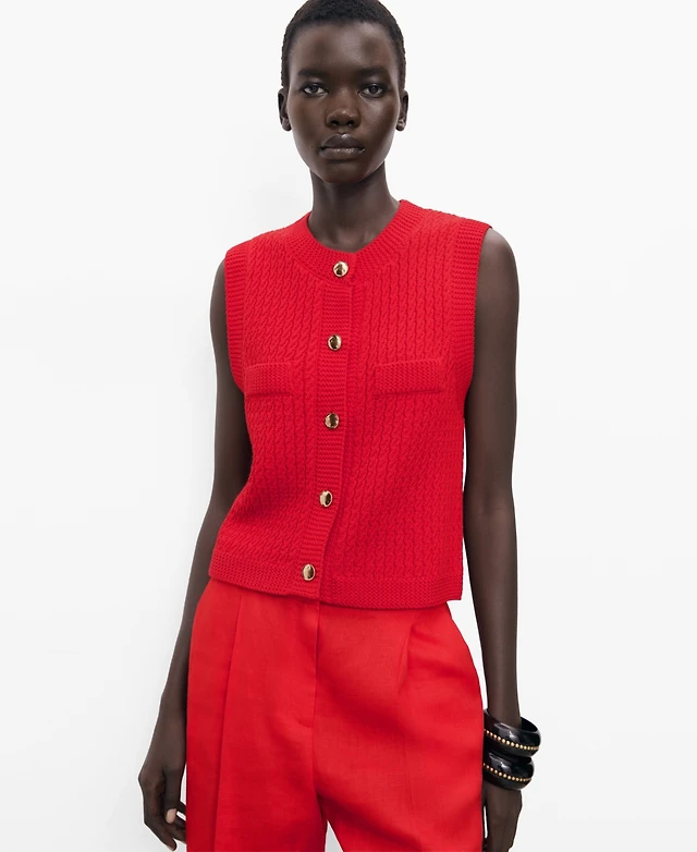 Mango Women's Buttoned Chunky-Knit Vest