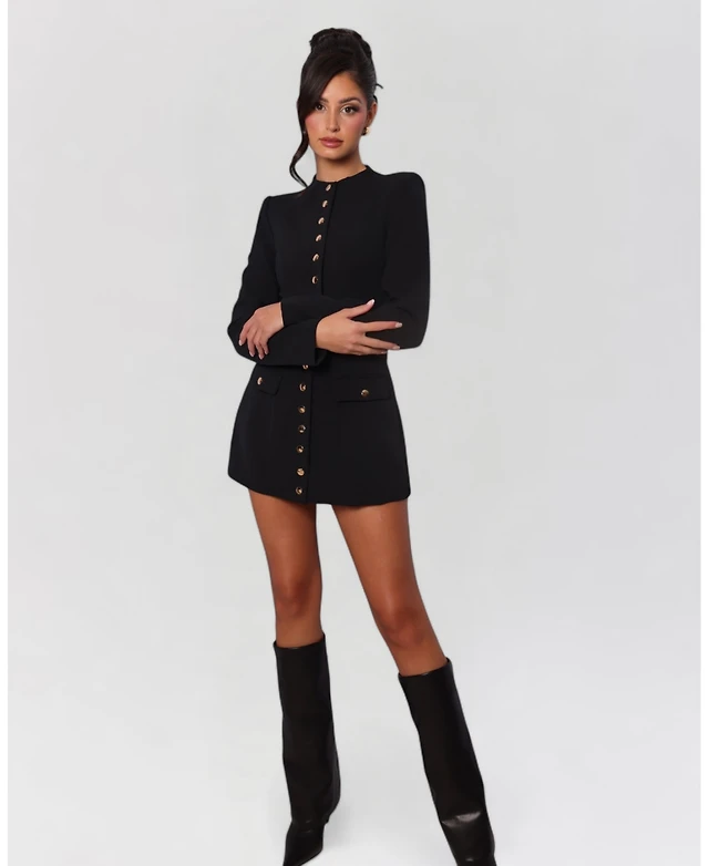 Heiress Beverly Hills Women's Long Sleeve Gold Button Down Blazer Mini Dress