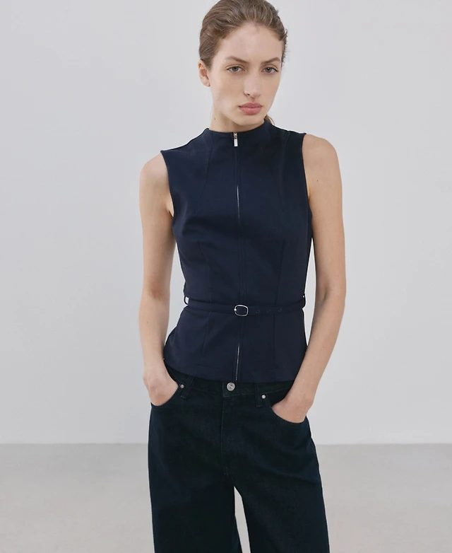Calvin Klein Womens Two Button Blazer Solid Zippered Mini Skirt Solid Sleeveless Top