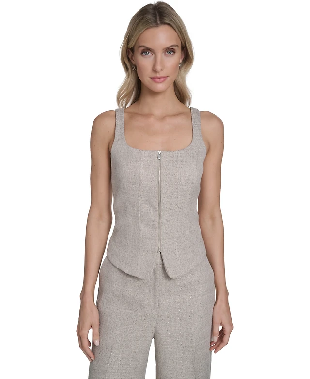 Dkny Women's Pinstripe V-Neck Sleeveless Vest
