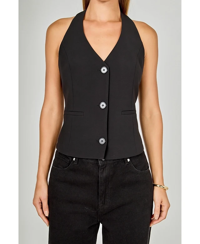 endless rose Women's Halter Neck Open Back A-Line Vest