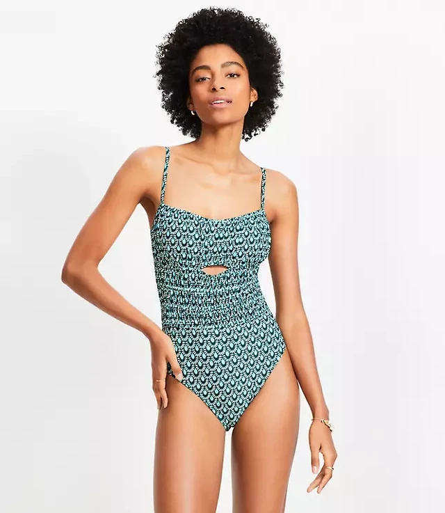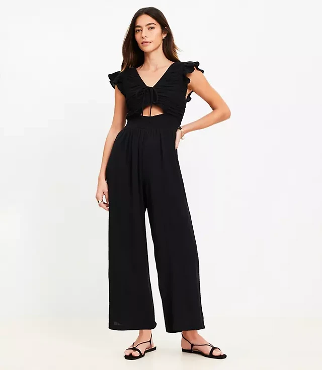 Petite LOFT Beach Crinkle Cutout Flutter Jumpsuit