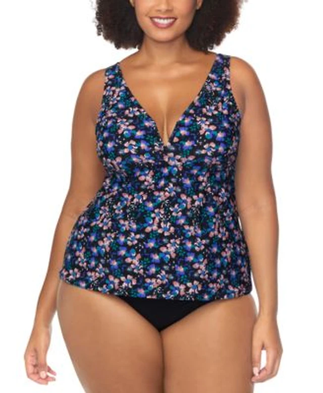 Coco Reef Womens Charisma Printed Ruched Tankini Top Bikini Bottoms