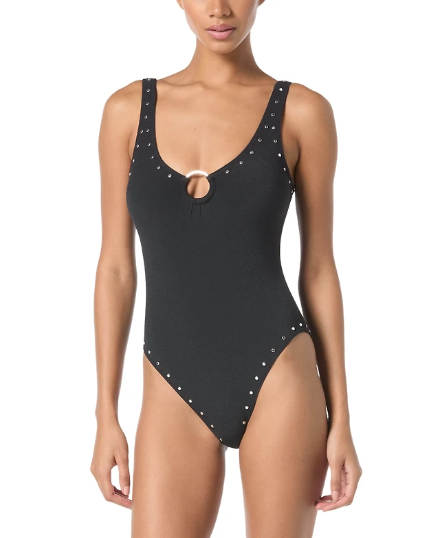 Beyond Control Women's Draped Metallic One-Piece Swimsuit