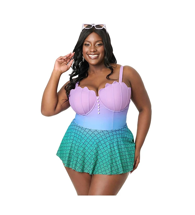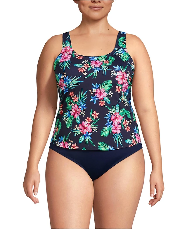 Lands' End Plus Chlorine Resistant One Piece Scoop Neck Fauxkini Swimsuit