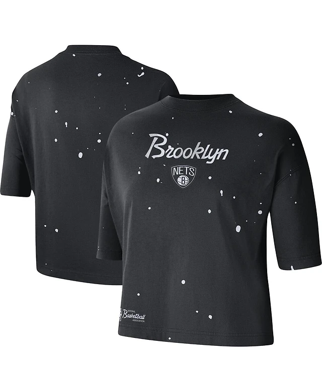 Women's Majestic Threads Black, White Brooklyn Nets Dirty Dribble Tri-Blend Cropped T-shirt