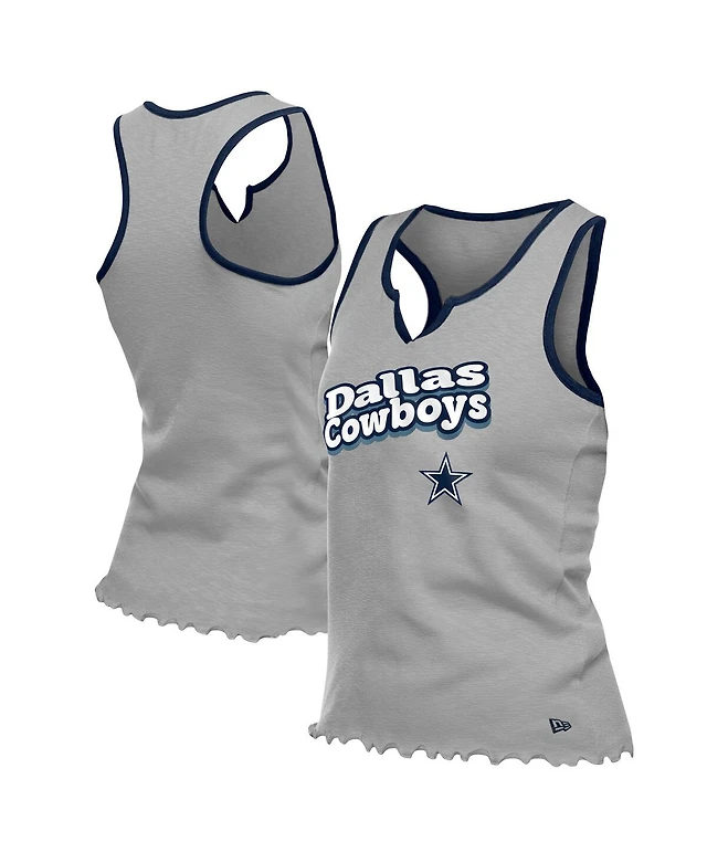 New Era Women's Silver Las Vegas Raiders Lettuce Hem Notch Neck Tri-Blend Tank Top