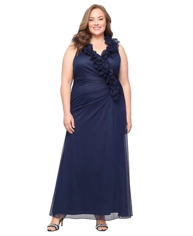 B Darlin Trendy Plus Ruched Cold-Shoulder Gown