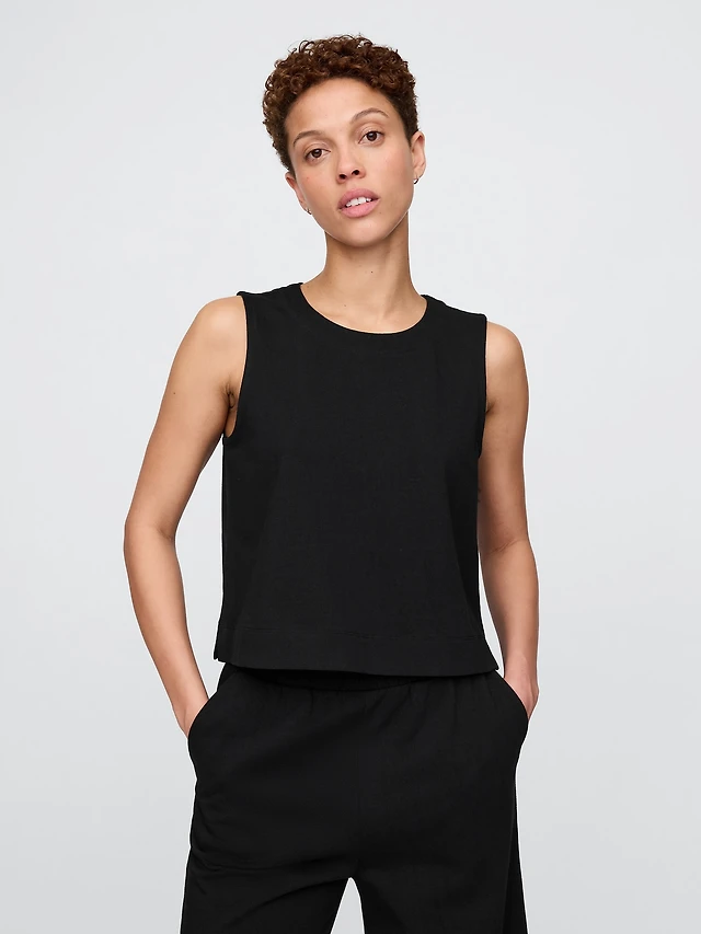 Linen-Blend Crewneck Shell Tank Top