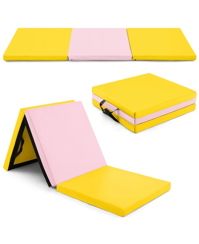 Sugift 6 x 2 Ft Tri-Fold Gym Mat with Handles and Removable Zippered Cover-Blue