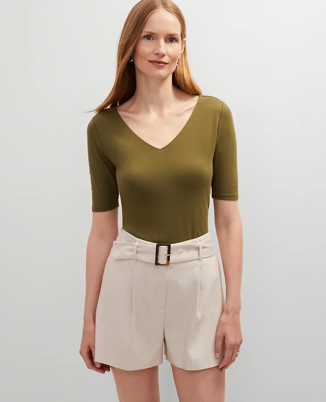 Ann Taylor Essential V-Neck Top Moss Green Women's