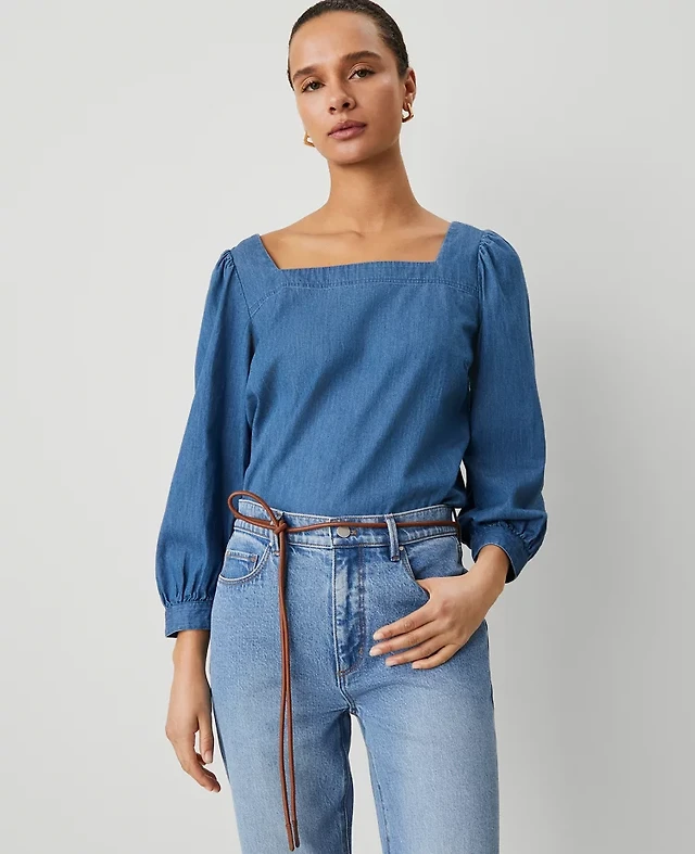 Ann Taylor Striped Square Neck Tank Top Black Women's