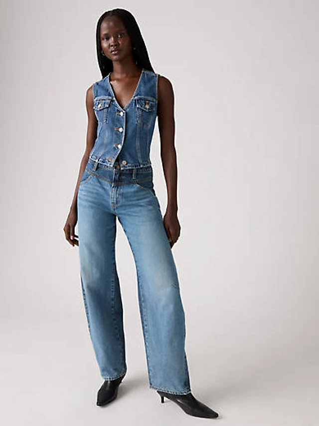 Low-Rise Ripped Light Wash Relaxed Straight Jeans