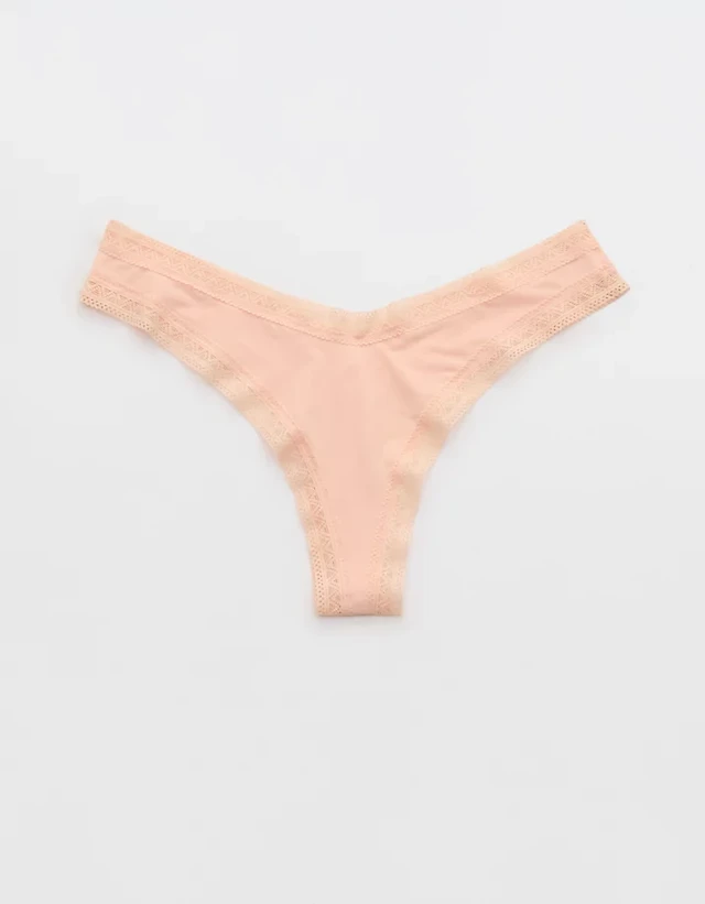 SMOOTHEZ Microfiber Lace Thong Underwear