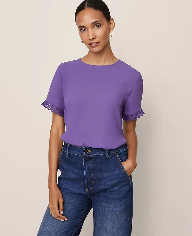 Ann Taylor Petite Mixed Media Pleat Front Top Women's