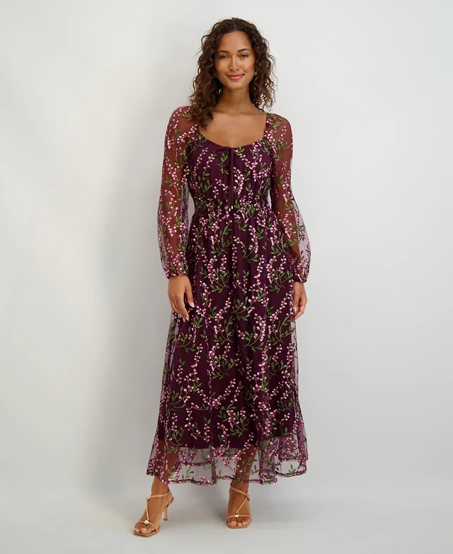 Anne Klein Women's Embroidered String-Belt Midi Dress