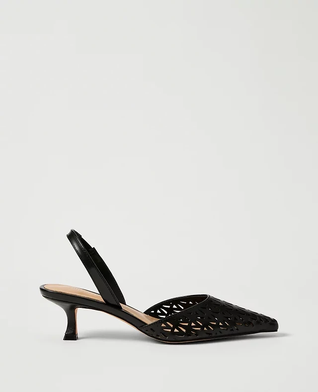 Ann Taylor Flower Leather Slingback Pump Women's