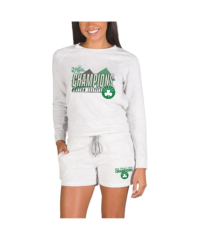 Concepts Sport Women's Oatmeal Boston Celtics 2024 Nba Finals Champions Mainstream Tri-Blend Long Sleeve T-Shirt Shorts Set