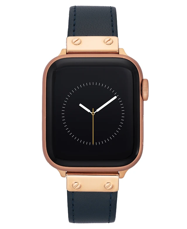 Anne Klein Women's Navy Genuine Leather Band designed for Apple Watch 42mm (Series 1-3 only) & 44/45/46/49mm (Ultra & Ultra 2)
