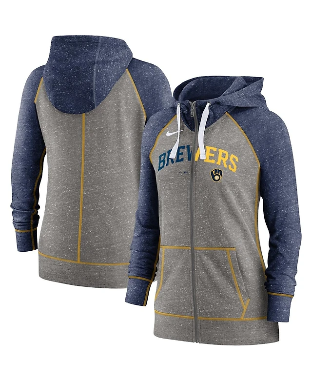 Women's Nike Heathered Charcoal and Royal Kansas City Royals Split Wordmark Gym Vintage-Like Raglan Slub Full-Zip Hoodie
