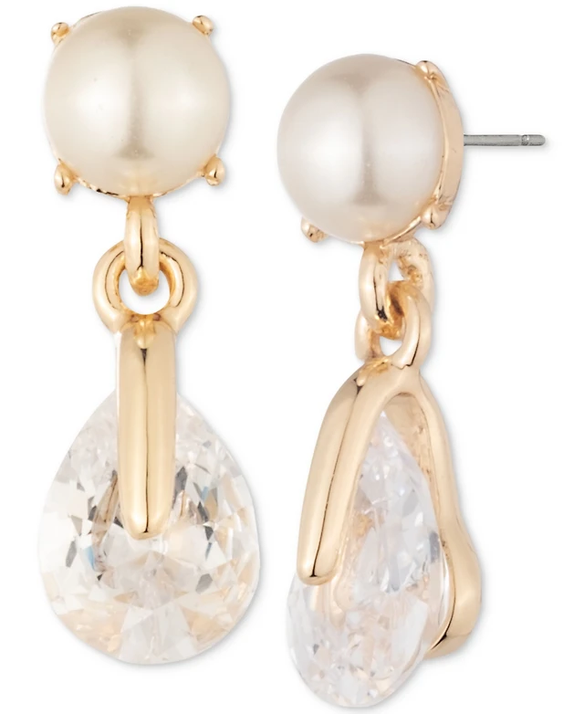 Anne Klein Gold-Tone Pave Knotted Drop Earrings