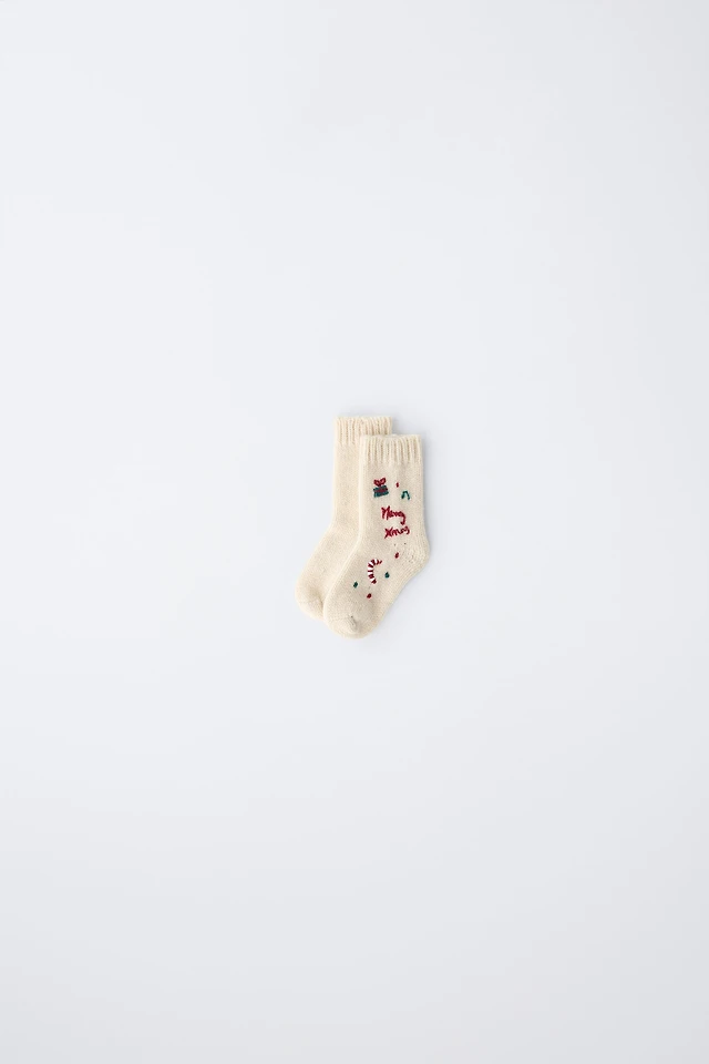 6-12 MONTHS/ EMBROIDERED WOOL SOCKS