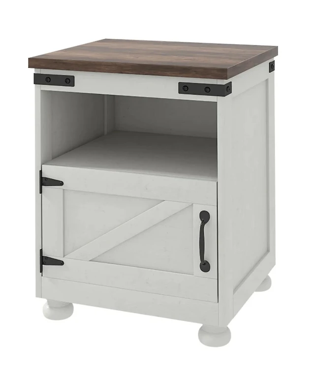Rainsken Bedside Cabinet, Farmhouse Storage Nightstand with Open Shelf and Cupboard for Living Room, Bedroom.