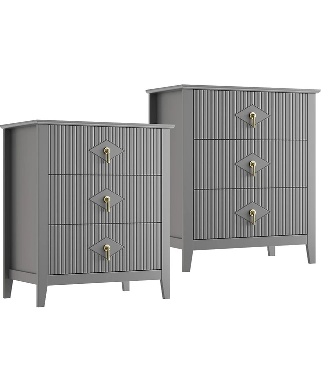 gaomon Mid-Century Modern Nightstand, 27.5" Wide Dresser with 3 Drawers, 150LB Strong Wood Bedside Table w/Metal Handle & Anti-Tip Kit, for Bedro