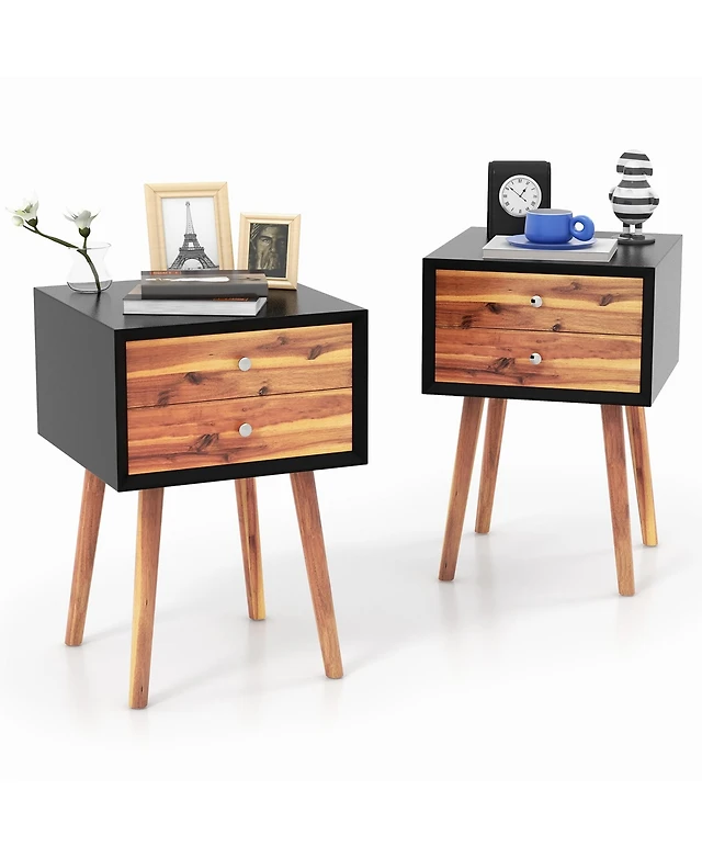 Fm Furniture Breeze Four-Legged Modern Bedroom Nightstand, with Two Drawers