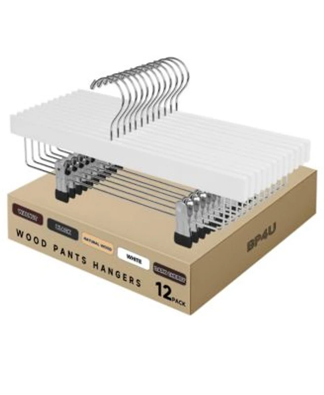 Bp4u 24 Pack Premium Wooden Pants Skirts Hangers With Adjustable Clip Heavy Duty Solid Wood Bottom Hangers For Trousers Dress Slacks Dresses