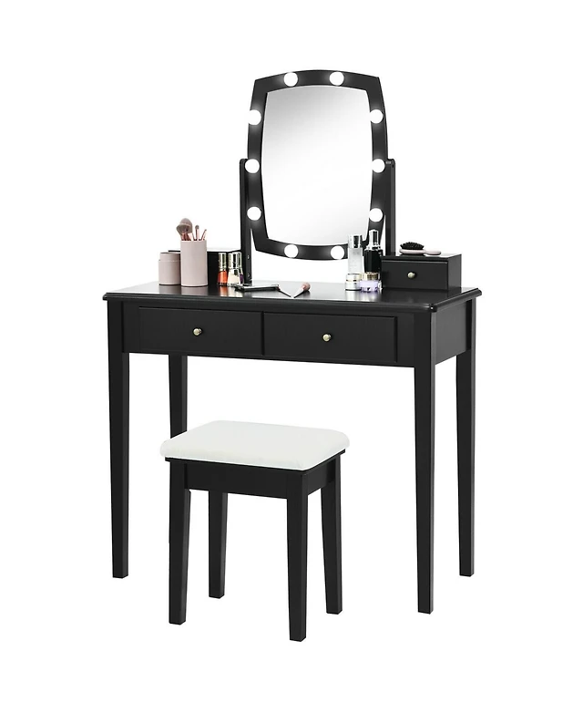 Makeup Vanity Desk with Mirror and Lights Dressing Table and Stool Set