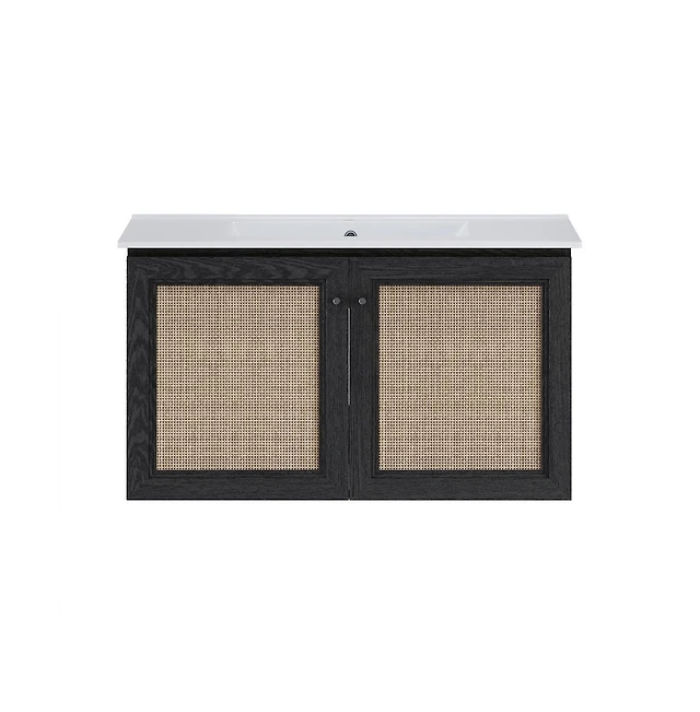 Wall-Mounted Vanity with Ceramic Sink and Soft-Close Doors