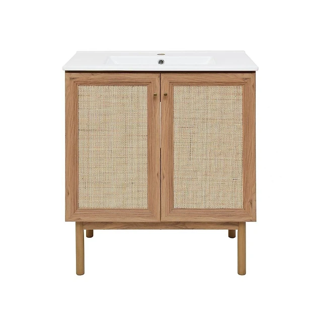 Casainc 30 Inch Bathroom Vanity with White Ceramic Basin and Adjustable Open Shelf