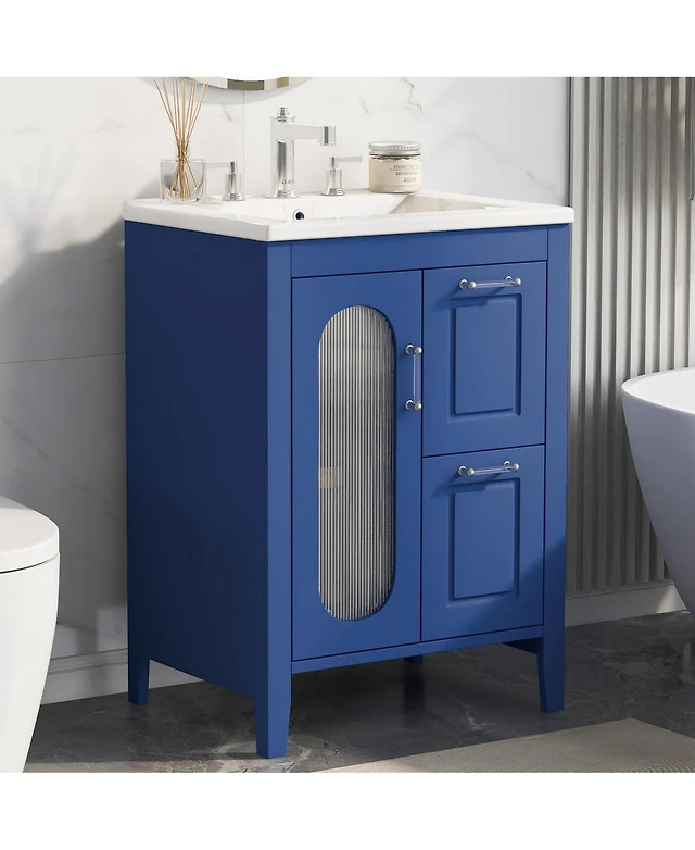 Elise 24.5 in. W x 18 In. D Bath Vanity in Monarch Blue with Ceramics Vanity Top in White with White Basin