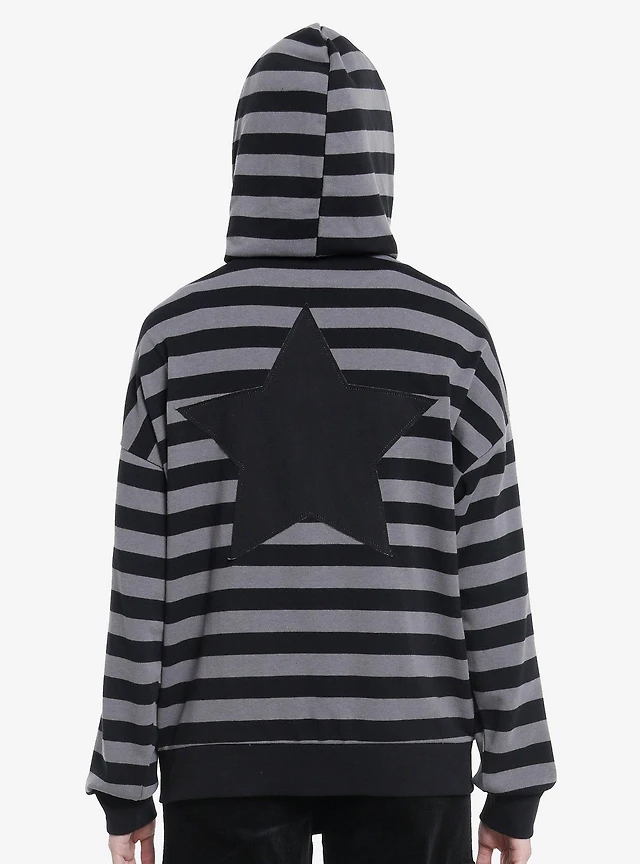 Social Collision Black & Grey Stripe Star Girls Hoodie