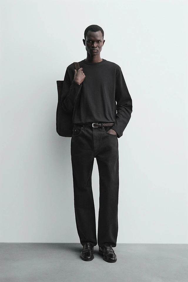 Ninth Hall Fundamentals Black Wash Thermal Boxy Long Sleeve T-Shirt