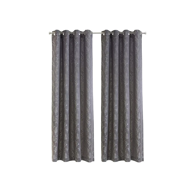 Ellis Curtain Clarice High Quality 2-Piece Leafy Branch Patterned Ruffled Tier Pair Window Curtains