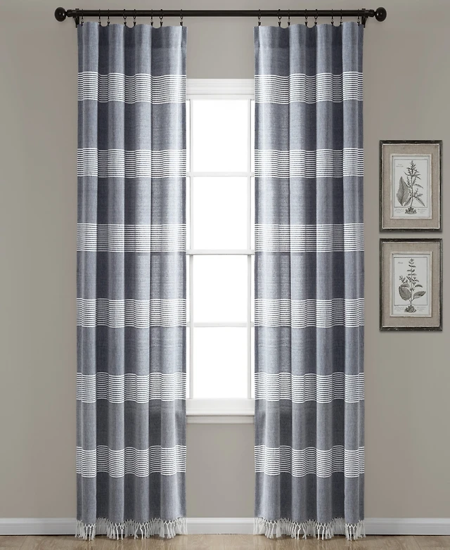 Ihi Home Bay Stripe Linen Sheer Curtain Panel Rod Pocket Hidden Back Tabs