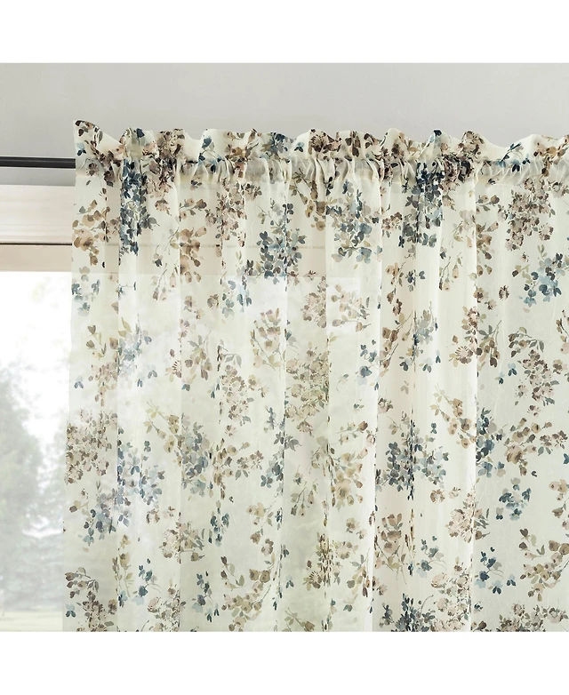 Chanasya Premium 2-Panel Floral Textured Sheer Curtain Panels - 3-in-1 Back Tab, Rod Pocket
