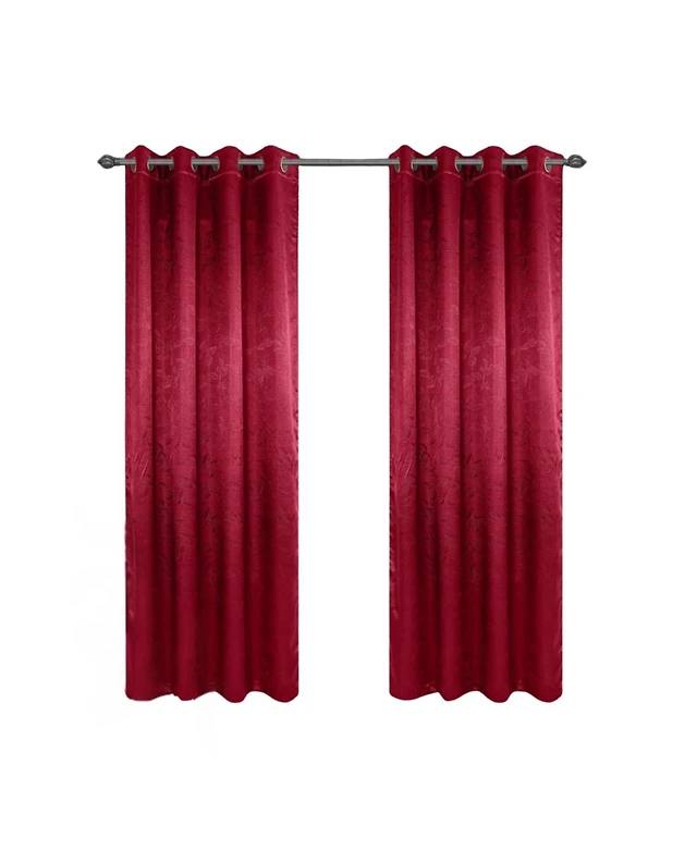 Rt Designers Collection 100% Polyester 140 Gsm Reed Embroidered Grommet Curtain Panel 54" x 90" Burgundy