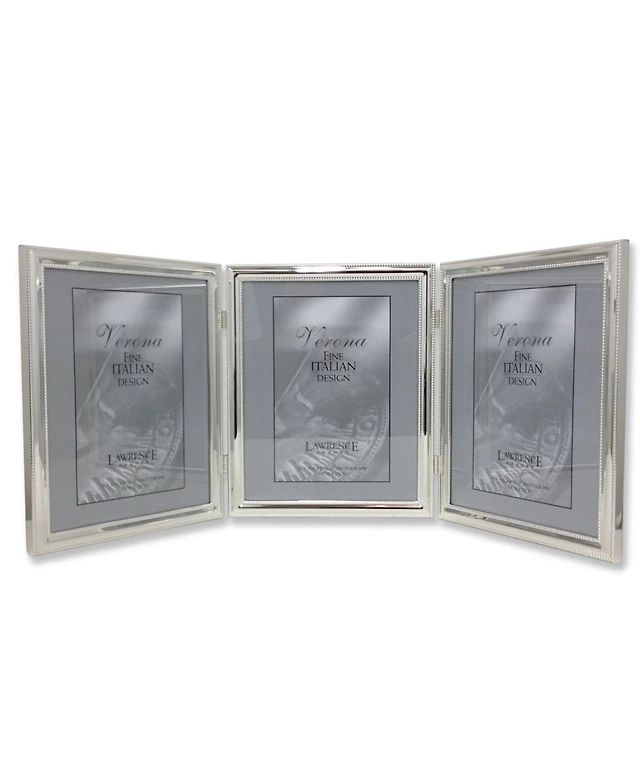 Lawrence Frames Polished Silver Plate Hinged Triple Picture Frame - Bead Border Design - 4" x 6"
