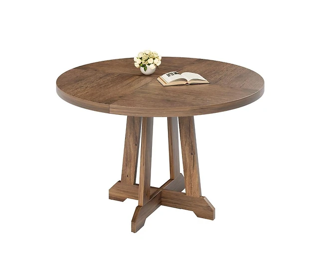 Round Wooden Dining Table with Curved Trestle Legs for Kitchen or Room