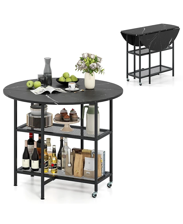 Volenca Folding Round Dining Table Drop Leaf Table with 2 Shelves for Small Spaces-White