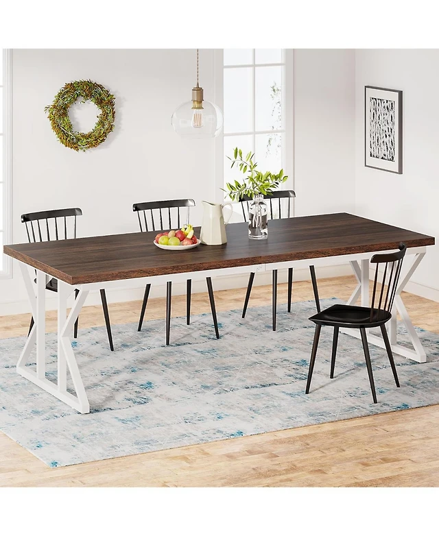 Tribesigns Square Dining Table Set of 6, Industrial Dinner Table with Metal Base, Wood Kitchen Table for 10 People, Brown Bar Table for Restaurants, K